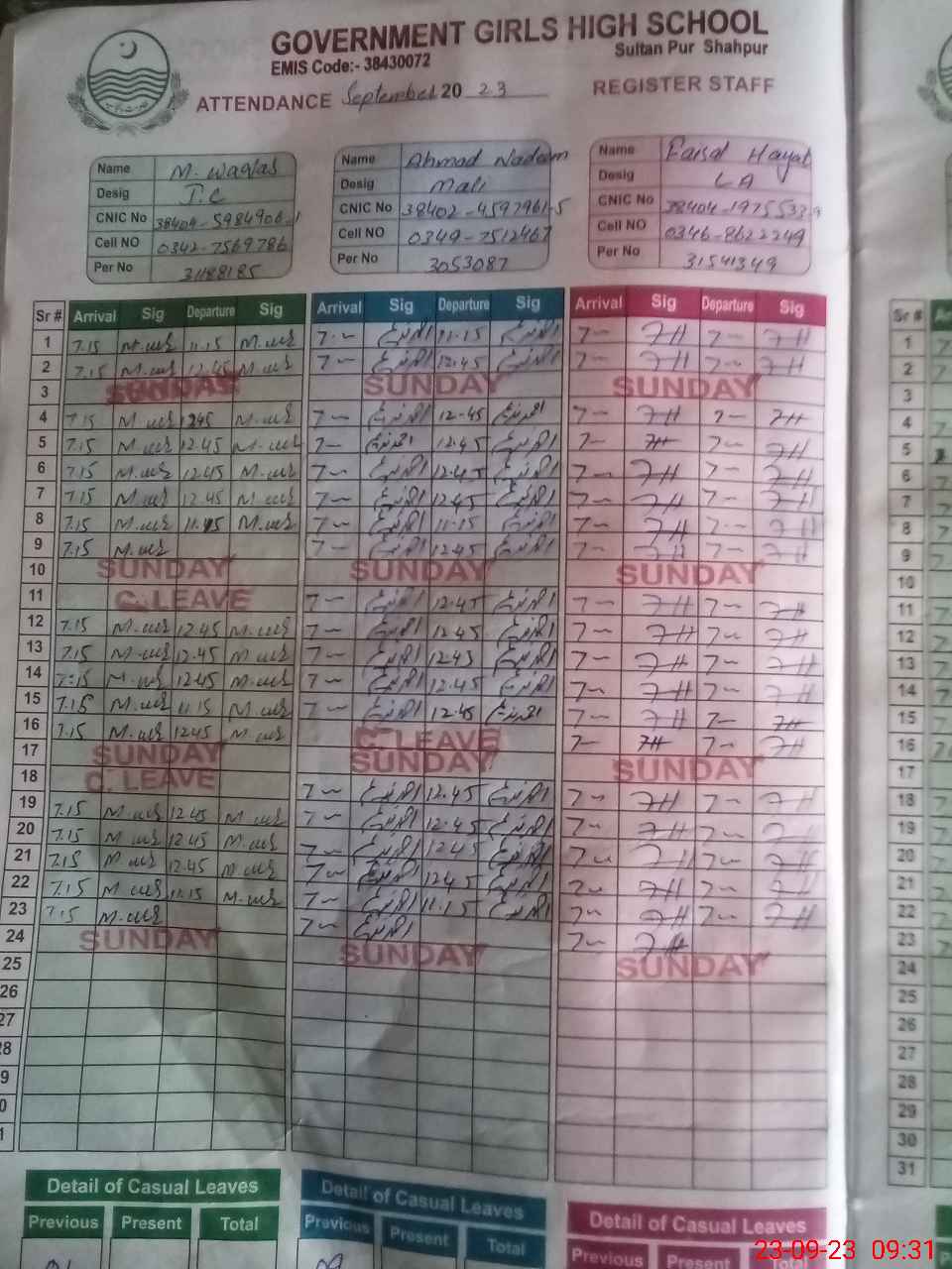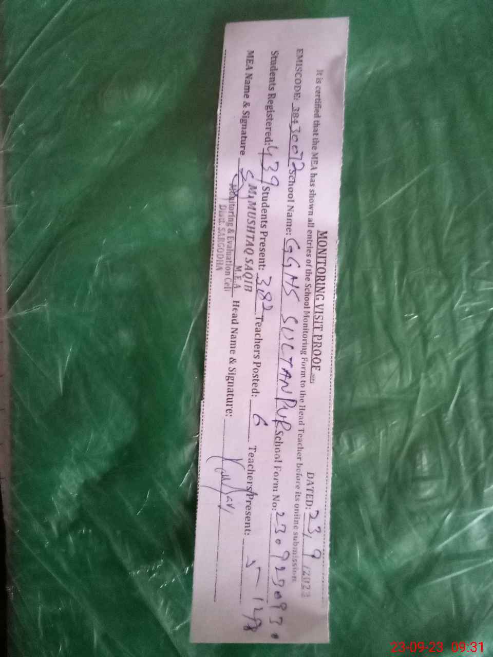 | EMIS Code: 38430072 | Name of School: GGHS SULTAN PUR | |||