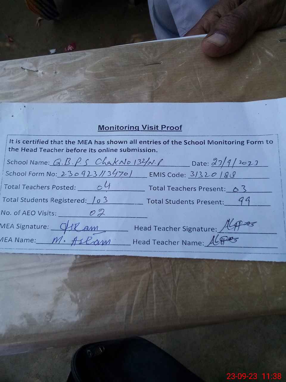 | EMIS Code: 31320188 | Name of School: GPS CHAK 132/NP | |||
