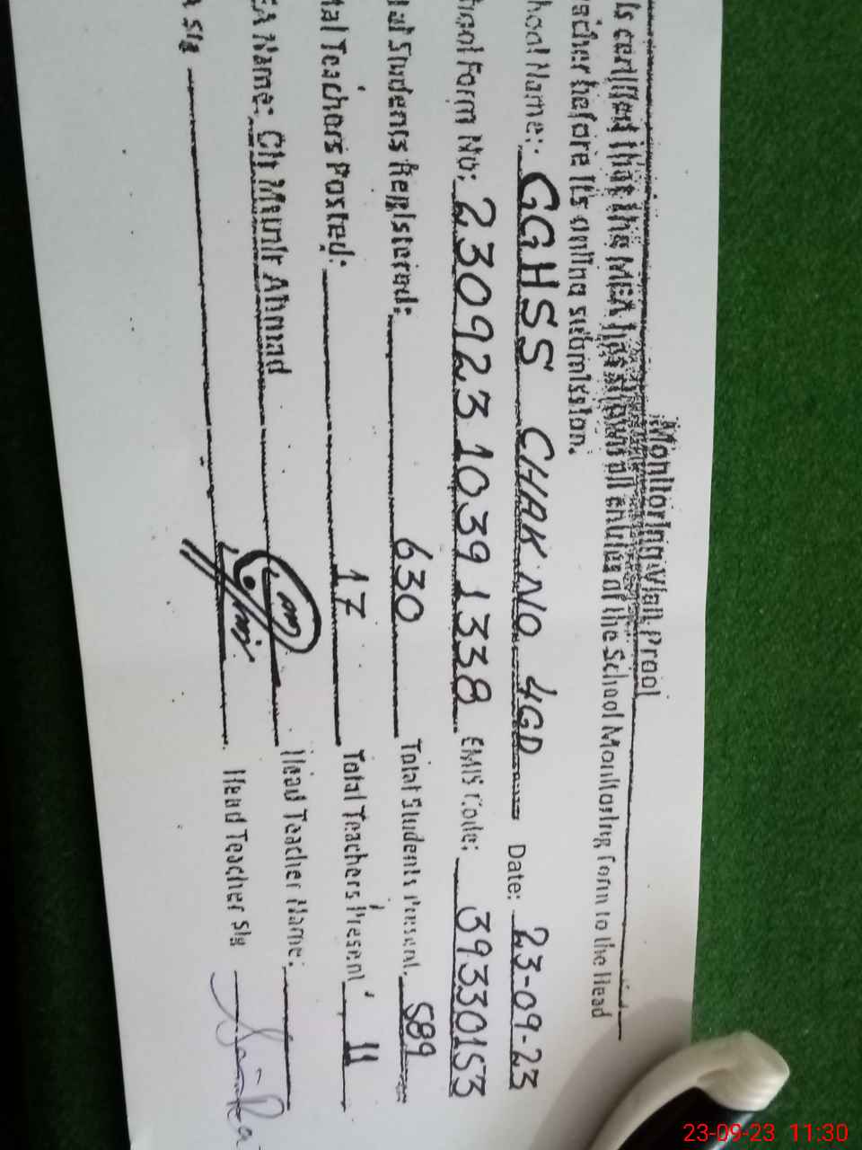 | EMIS Code: 39330153 | Name of School: NADEEM TANVEER SHAHEED GGHSS CHAK NO.4-GD | |||