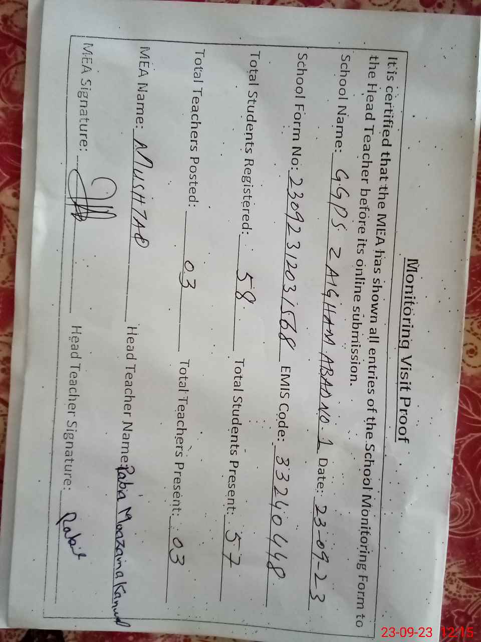 | EMIS Code: 33240448 | Name of School: GGPS ZAIGHAM ABAD NO. 1 | |||
