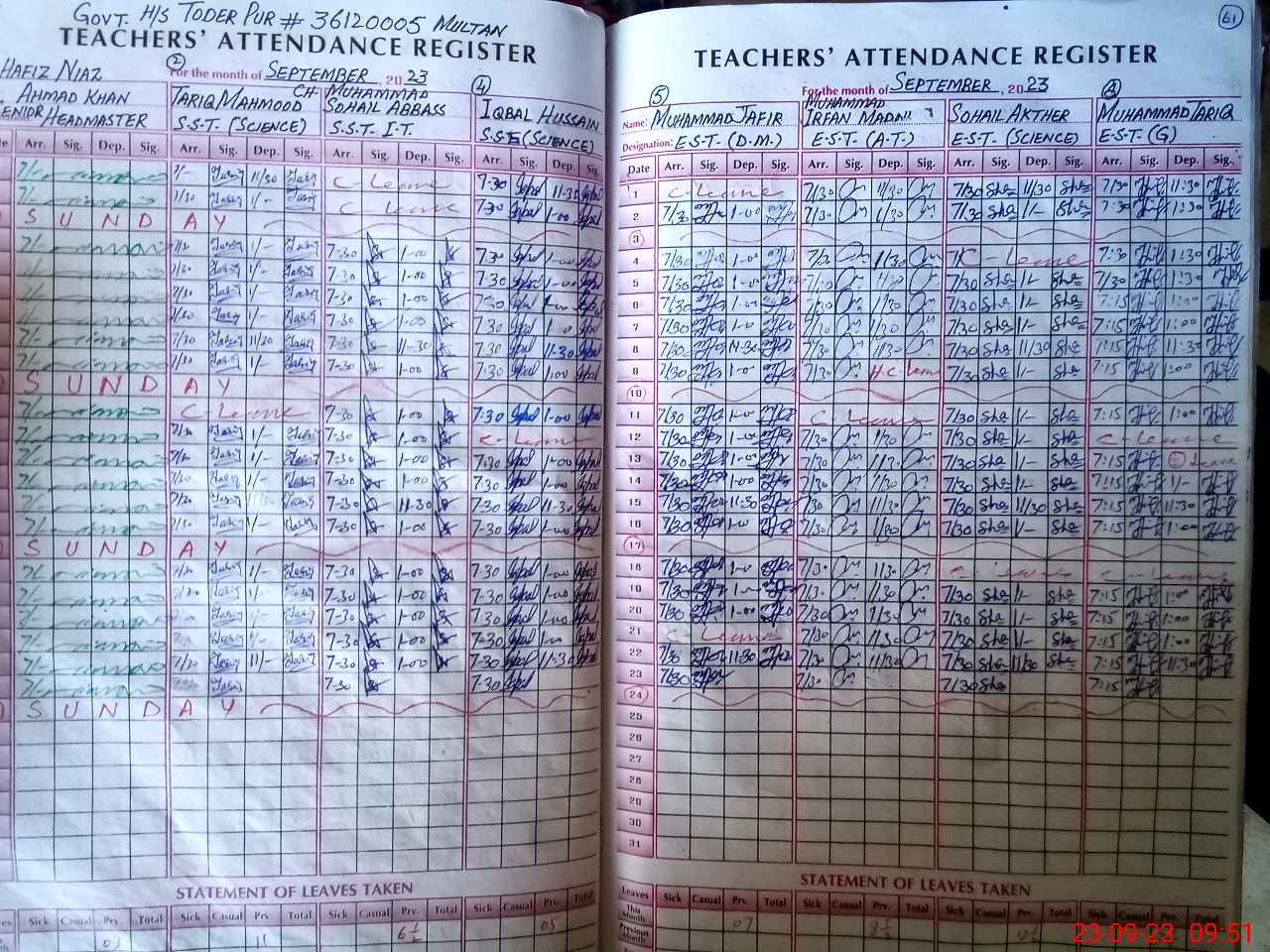 | EMIS Code: 36120005 | Name of School: GHS TODAR PUR BASTI CHUJJU SHAH SHUJABAD | |||