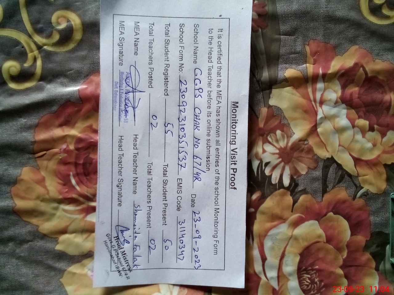 | EMIS Code: 31140347 | Name of School: GGPS CHAK NO 67/4-R | |||