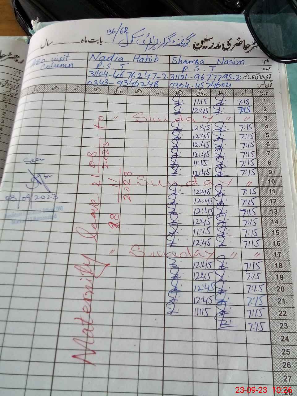 | Leave | Duty | Absent | Maternity | Medical | Ex- Pak |