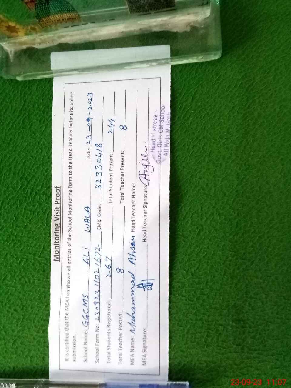 | EMIS Code: 32330418 | Name of School: GGCMS ALI WALA | |||