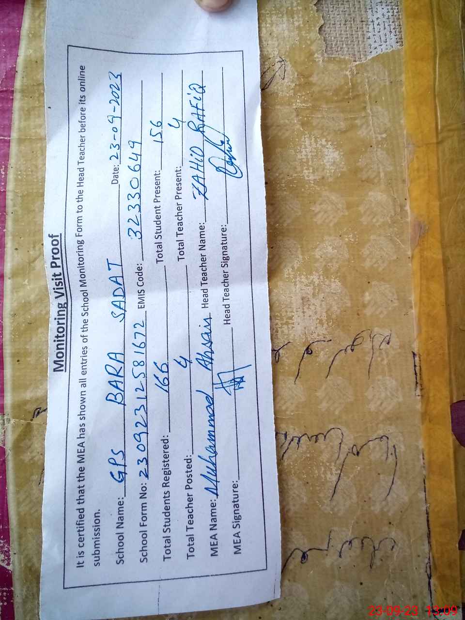 | EMIS Code: 32330649 | Name of School: GPS BARA SADAT | |||