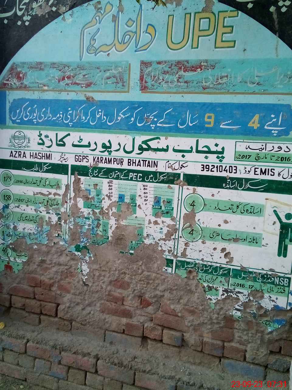 | EMIS Code: 39210403 | Name of School: GGPS KARAM PUR BHATTAIN | |||