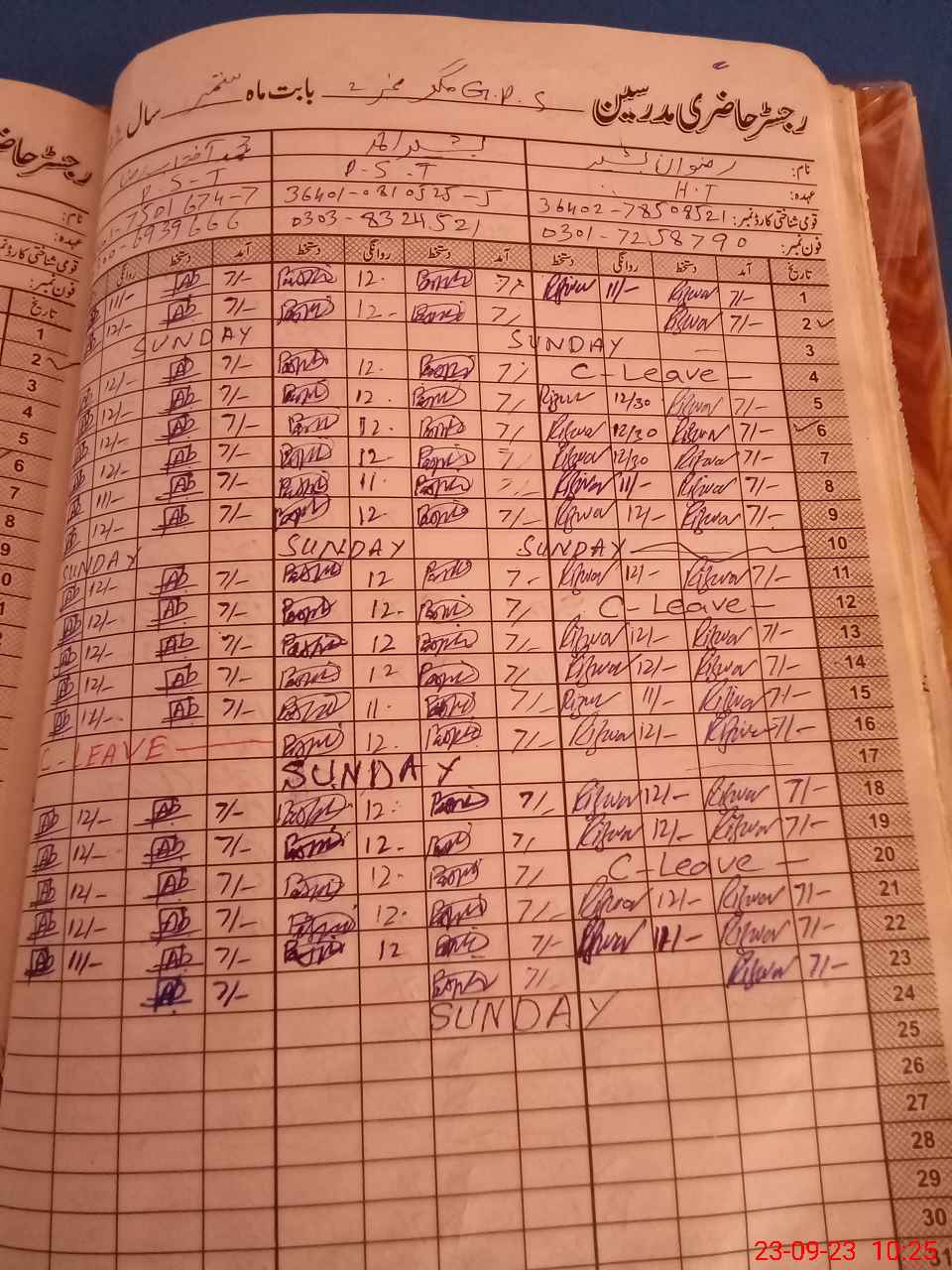 | Name: RI**** BA**** Designation: (School Headmaster's/Headmistress's) PST Phone/Cell Number: 03**** |