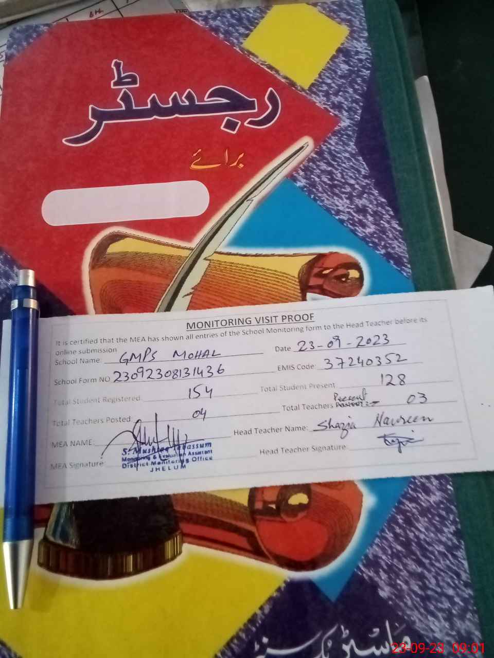 | EMIS Code: 37240352 | Name of School: GMPS MOHAL | |||