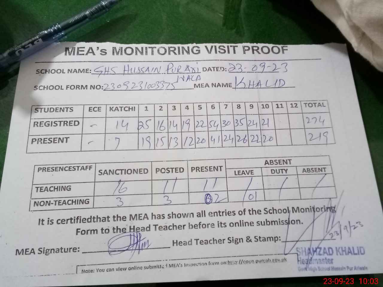 | EMIS Code: 36430069 | Name of School: GHS HUSSAIN PUR AARI WALA, TULAMBA | |||