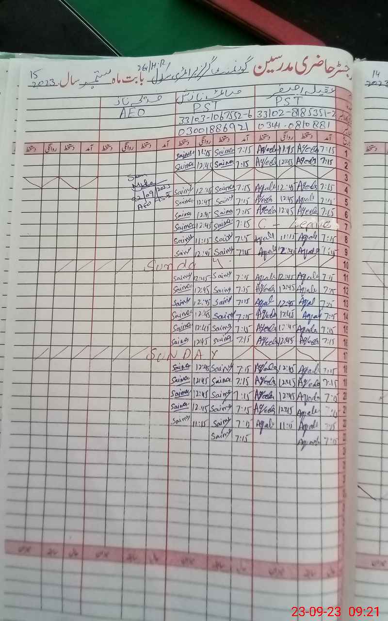 | Name: AQ**** AS**** Designation: (School Headmaster's/Headmistress's) PST Phone/Cell Number: 03**** |