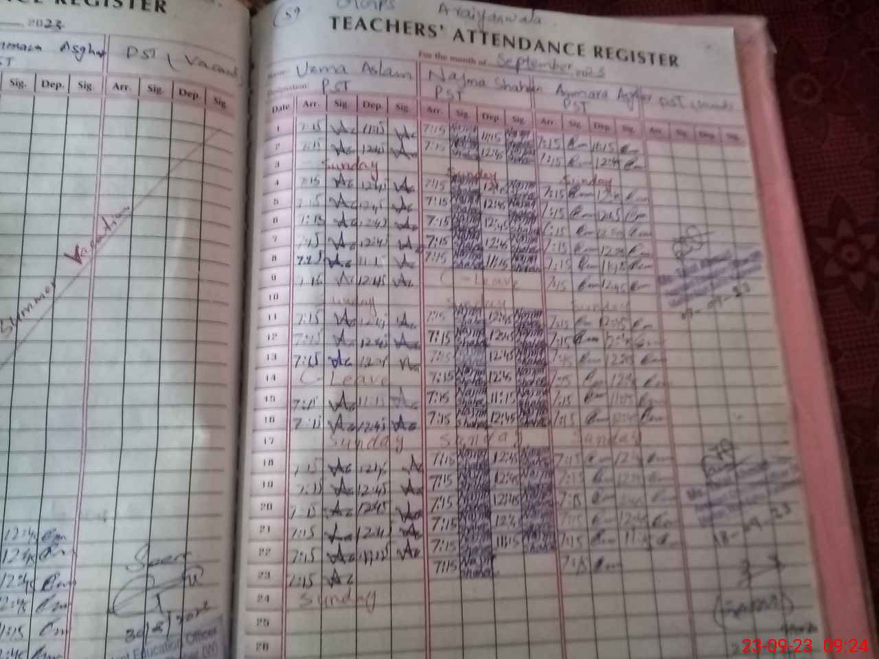 | CNIC | Full Name | Designation | R/C | Absence During Last Calender Month |
