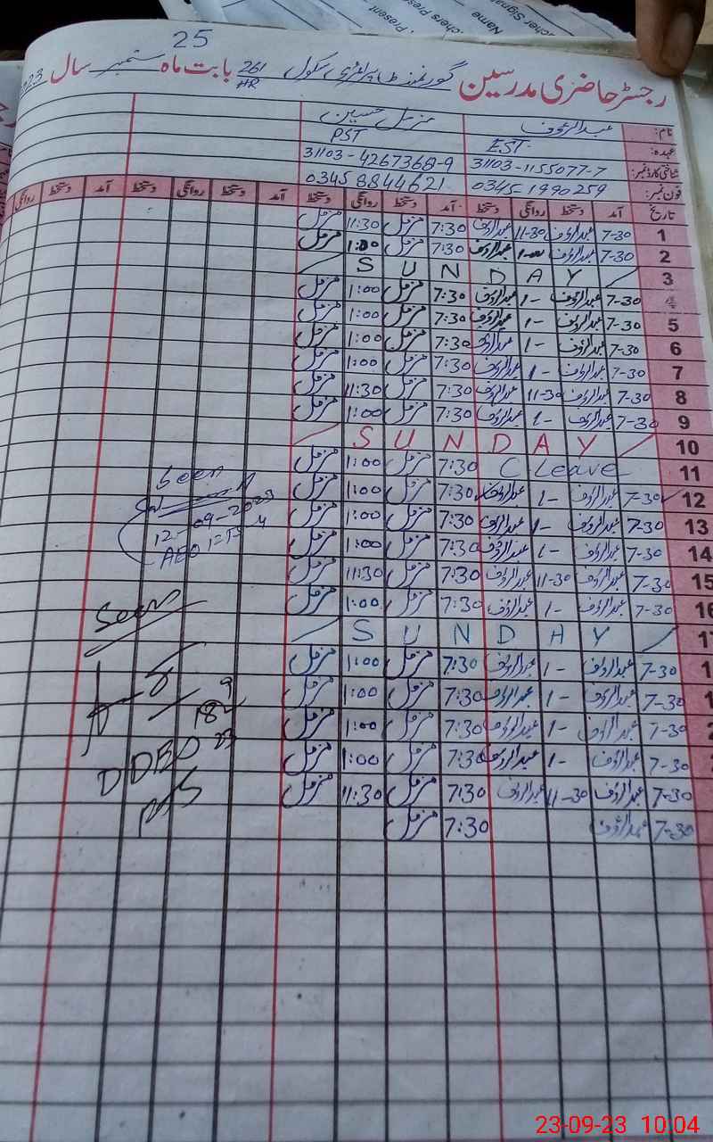 | Name: AB**** RA**** Designation: (School Headmaster's/Headmistress's) PST Phone/Cell Number: 03**** |