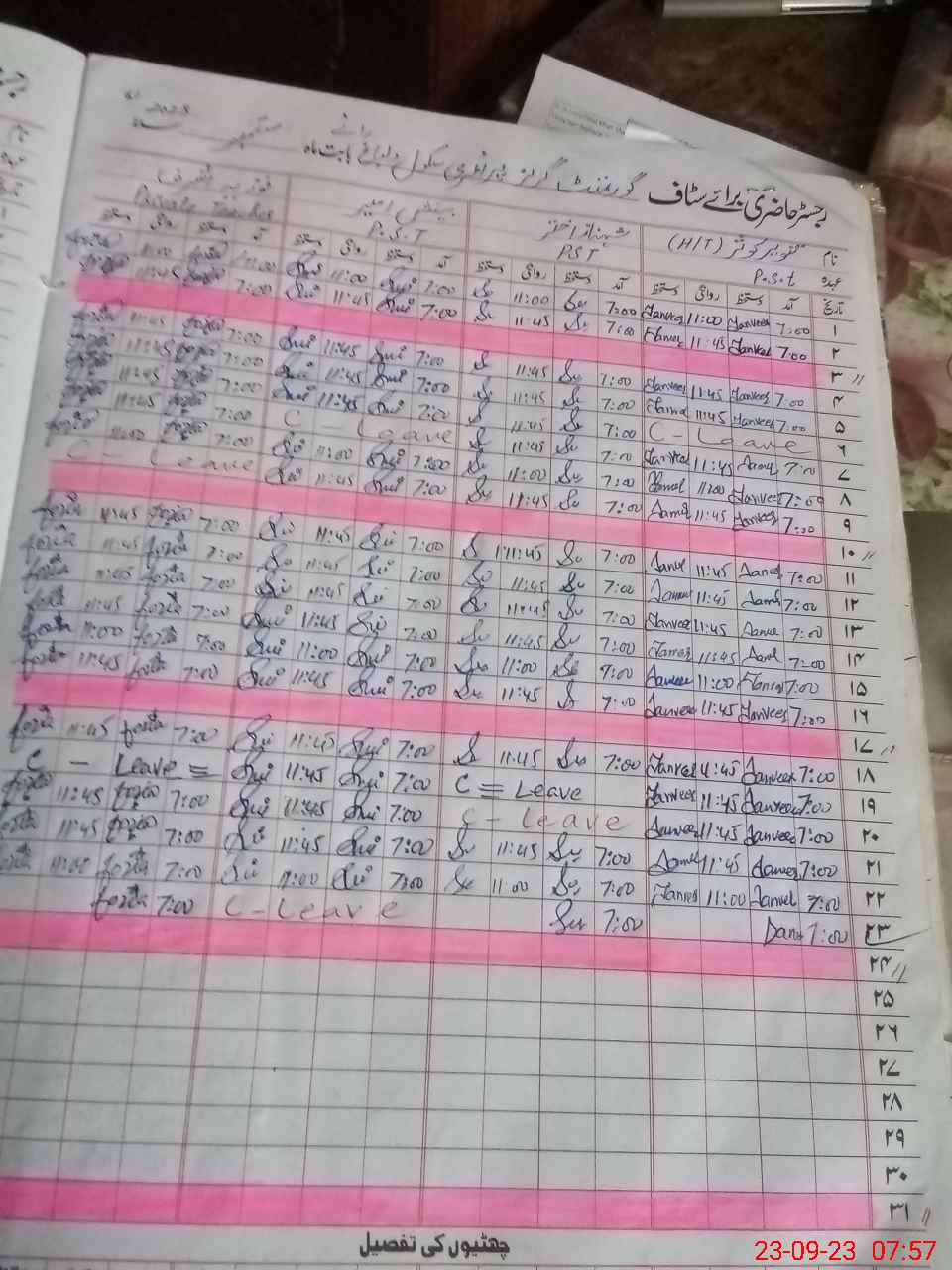 | CNIC | Full Name | Designation | R/C | Absence During Last Calender Month |