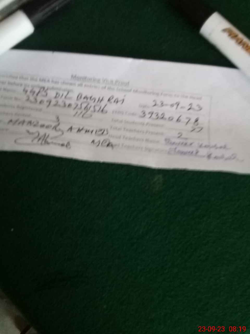 | Monitoring Date: 23-09-2023 | Start Time: 23-09-2023 07:56 AM | End Time: 23-09-2023 08:20 AM | Name of MEA: MA**** AH**** | |