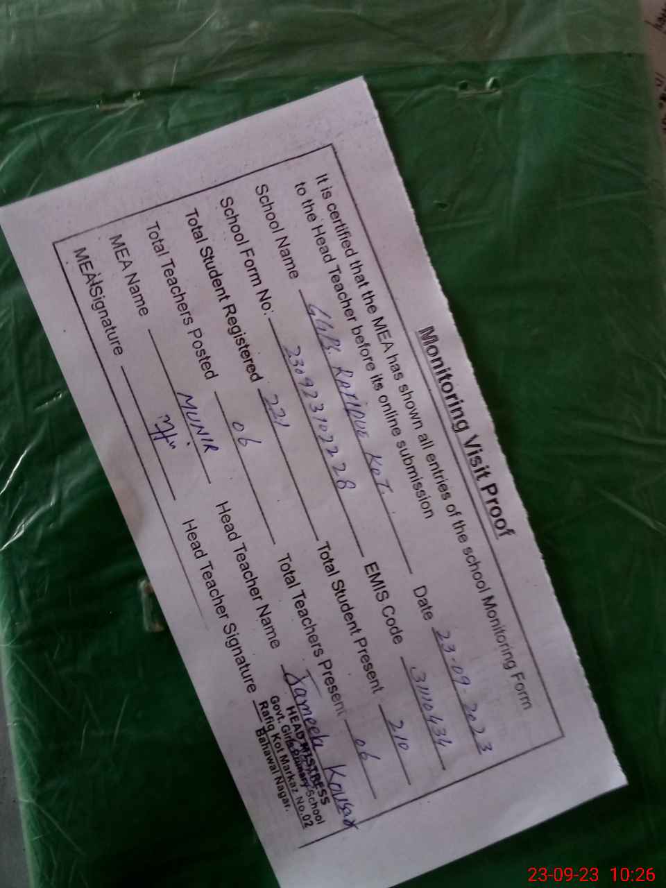 | EMIS Code: 31110434 | Name of School: GGPS RAFIQ KOT | |||
