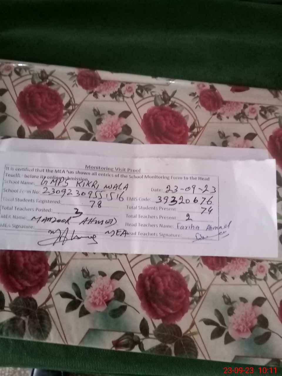 | EMIS Code: 39320676 | Name of School: GMPS KIKRI WALA | |||