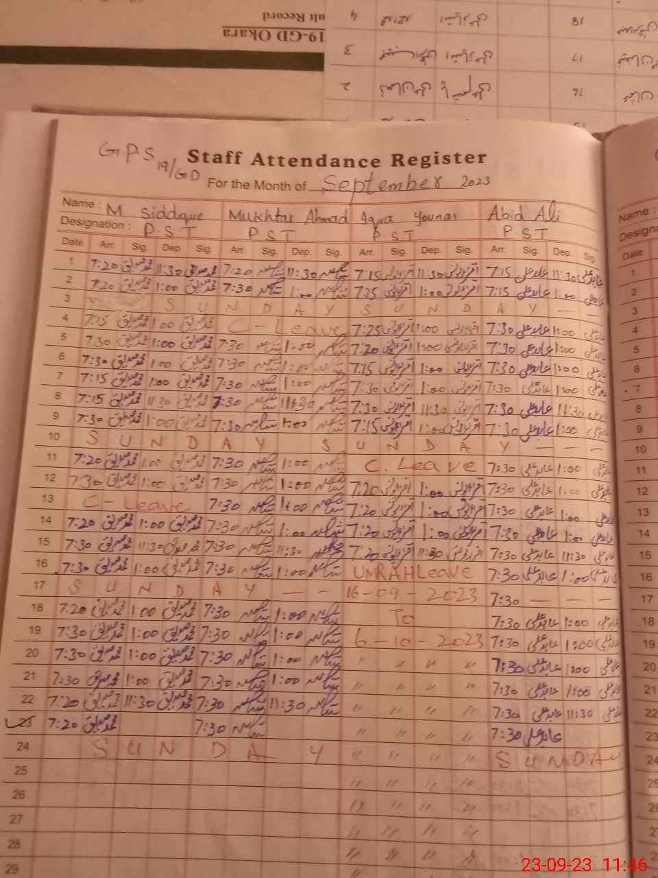 | CNIC | Full Name | Designation | R/C | Absence During Last Calender Month |