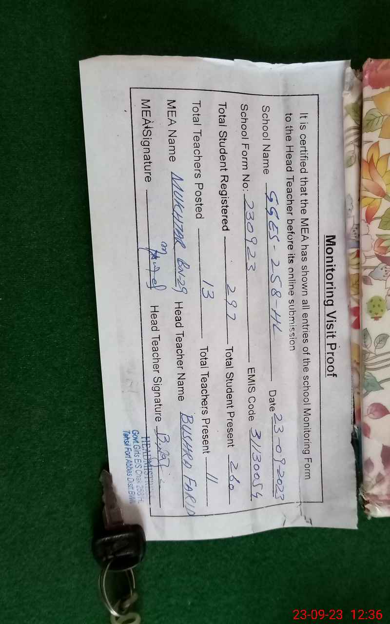 | Certified that this School was Inspected by the Undersigned MEA/DMO Today and the Information Stated Above is as Per Record. | |||||