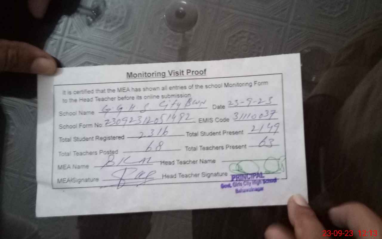 | EMIS Code: 31110037 | Name of School: GGHS CITY BAHAWALNAGAR | |||