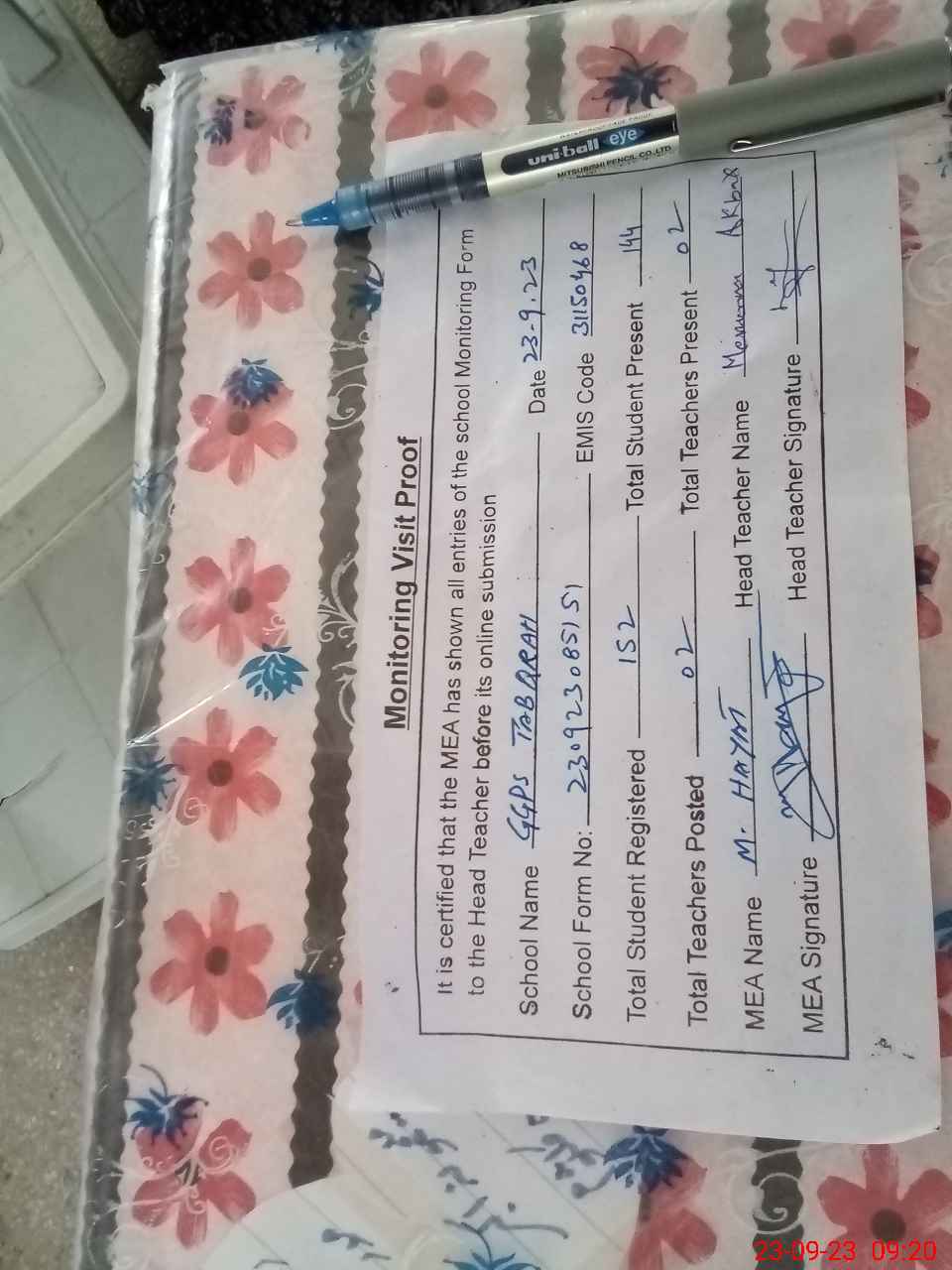 | EMIS Code: 31150468 | Name of School: GGPS TABQRAH | |||
