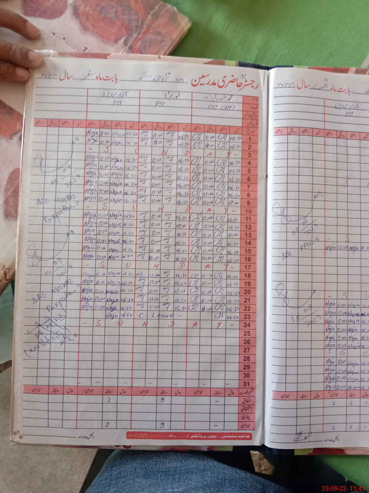 | CNIC | Full Name | Designation | R/C | Absence During Last Calender Month |