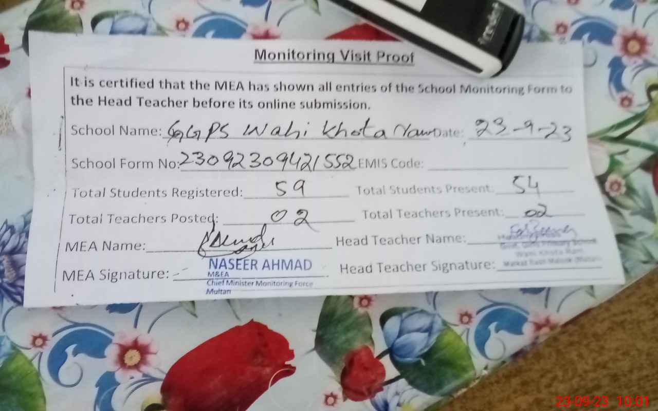 | EMIS Code: 36130512 | Name of School: GGPS WAHI KHOTA RAM | |||