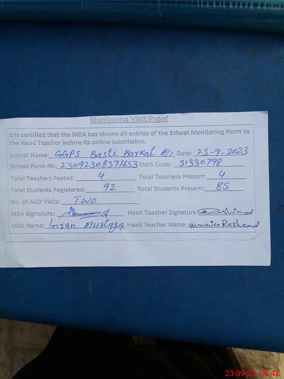| EMIS Code: 31330798 | Name of School: GGPS BASTI BARKAT ALI | |||