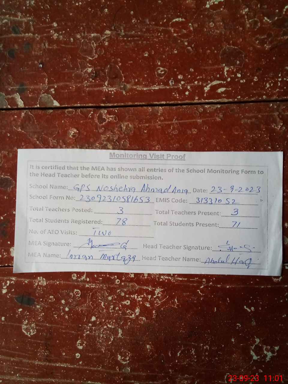 | EMIS Code: 31331052 | Name of School: GPS NOSHAHRA AHMED ANIA P/O DARI AZIM KHAN | |||