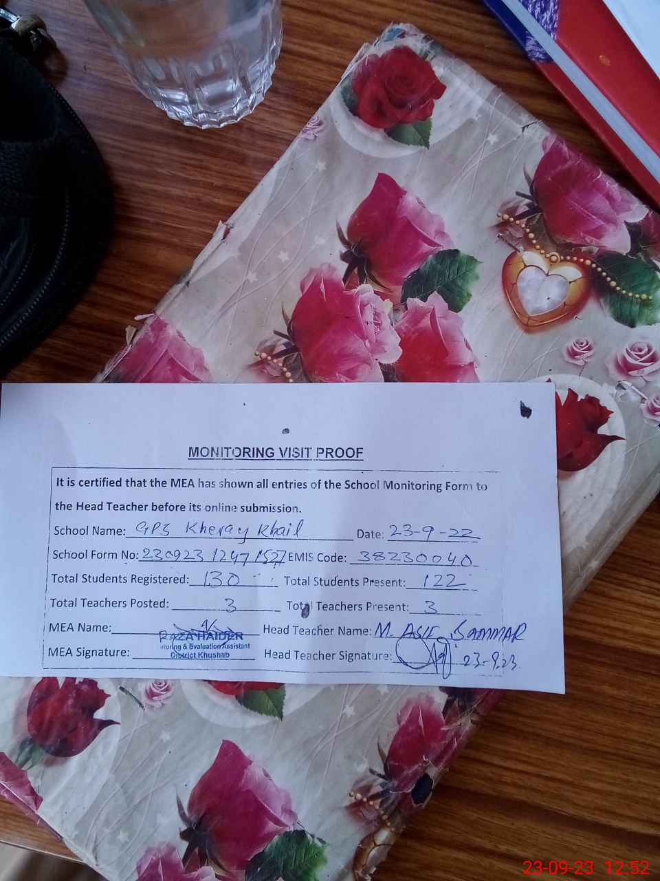 | EMIS Code: 38230040 | Name of School: GPS KHARAY KHAIL | |||