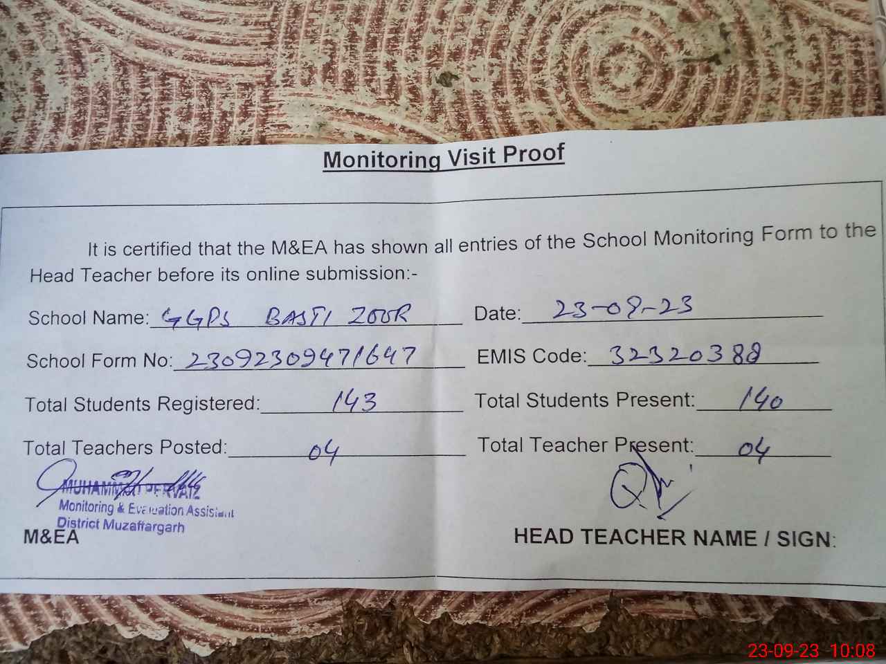 | EMIS Code: 32320388 | Name of School: GGPS BASTI ZOUR | |||