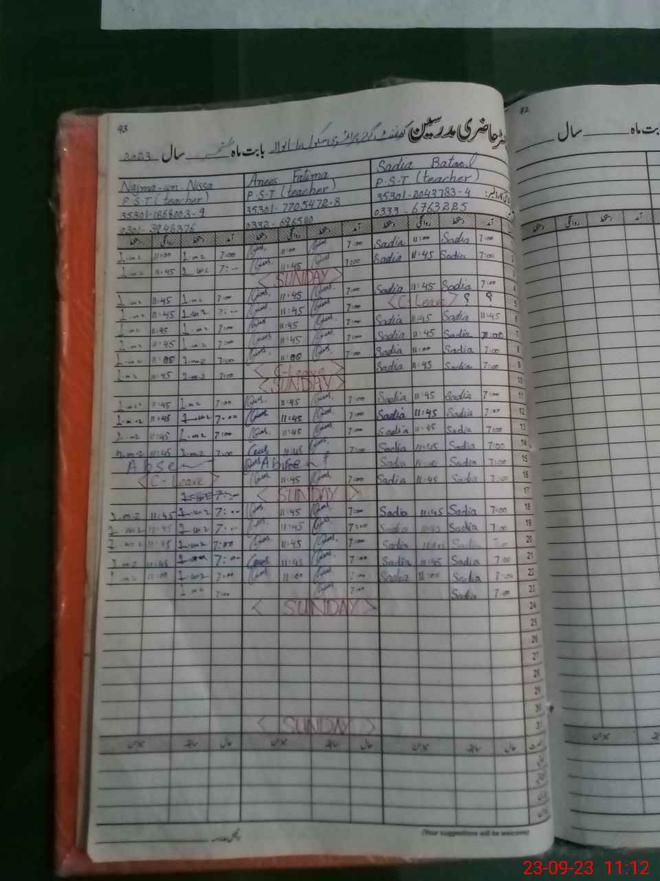| Name: Sa**** Ba**** Designation: (School Headmaster's/Headmistress's) PST Phone/Cell Number: 03**** |