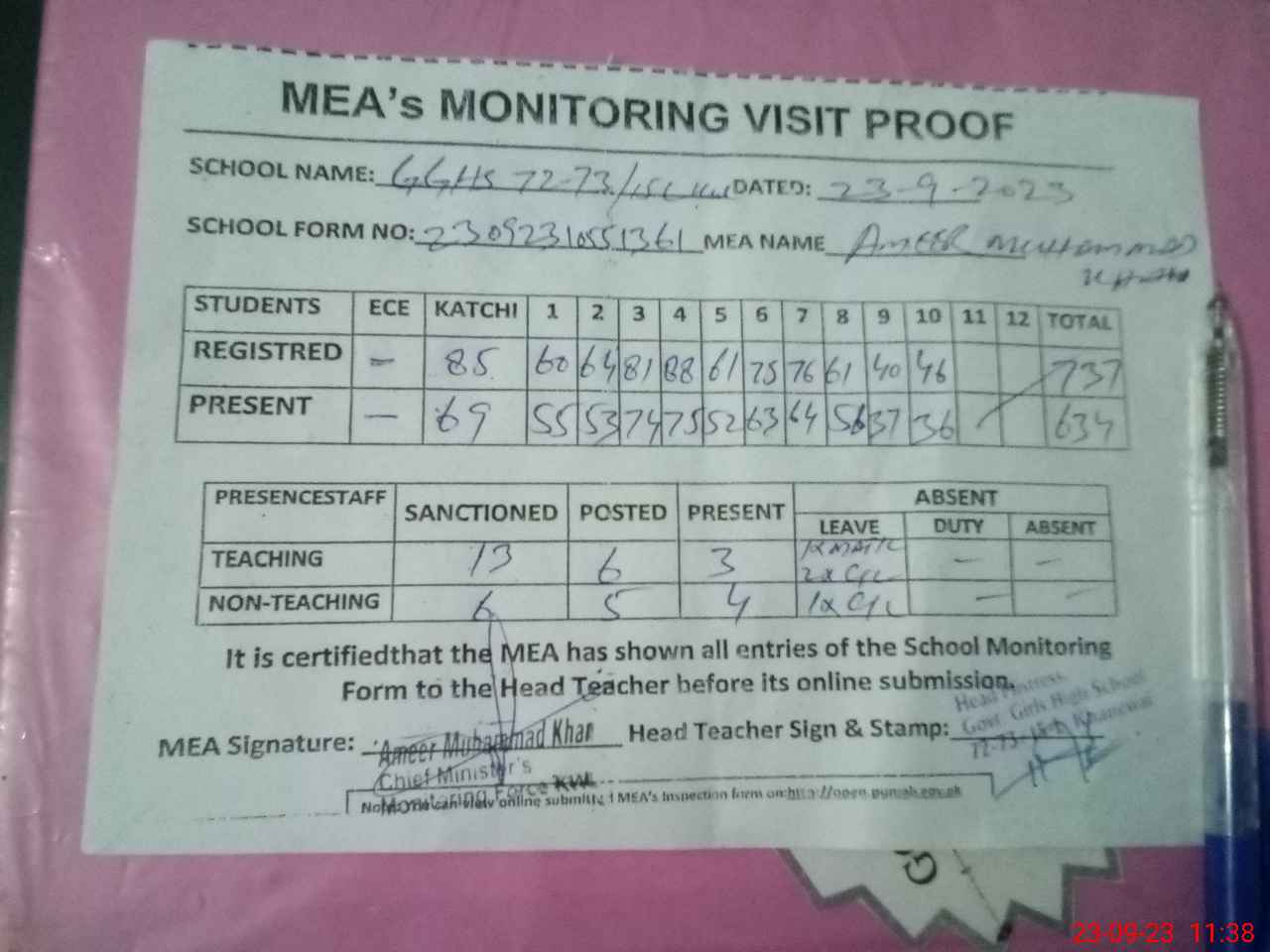 | Monitoring Date: 23-09-2023 | Start Time: 23-09-2023 10:25 AM | End Time: 23-09-2023 11:42 AM | Name of MEA: Am**** Mu**** Kh**** | |
