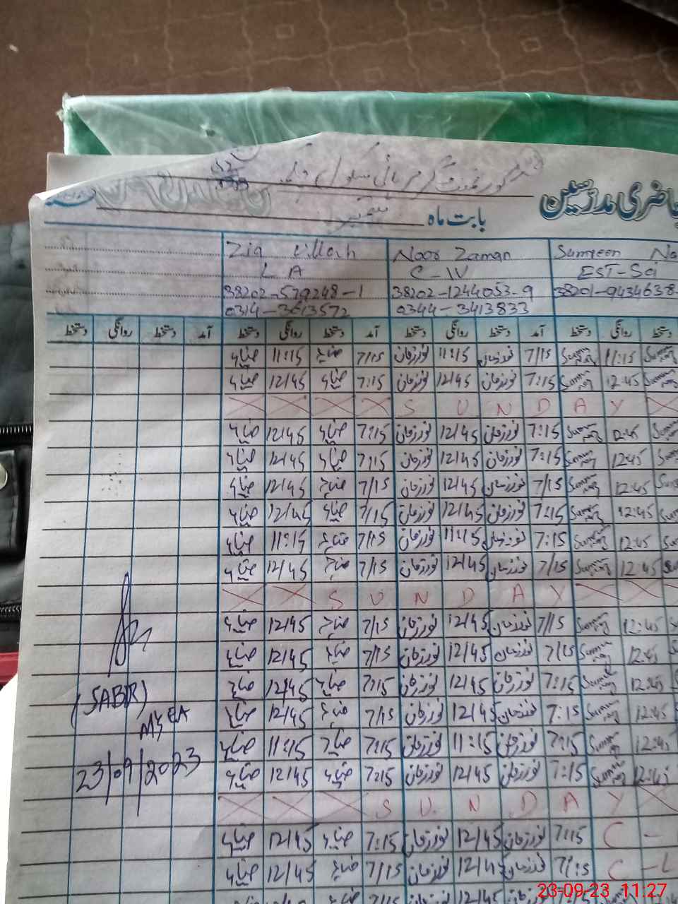 | CNIC | Full Name | Designation | R/C | Absence During Last Calender Month |