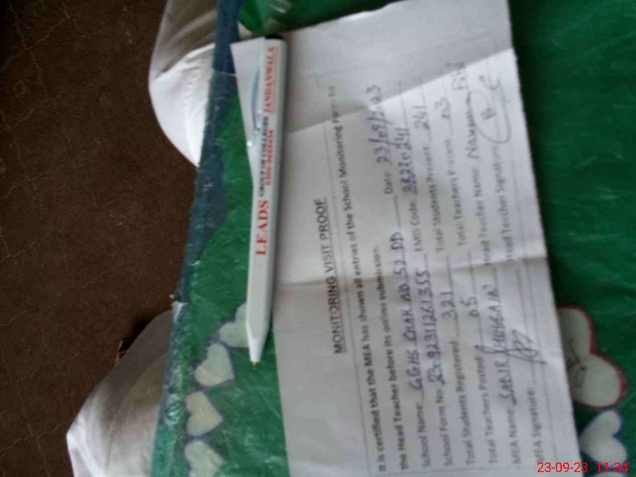 | Attendance Register | Head Teacher | MEA with School | Visit Proof |