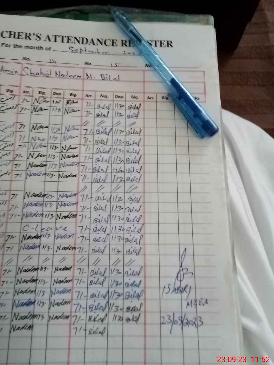 | CNIC | Full Name | Designation | R/C | Absence During Last Calender Month |