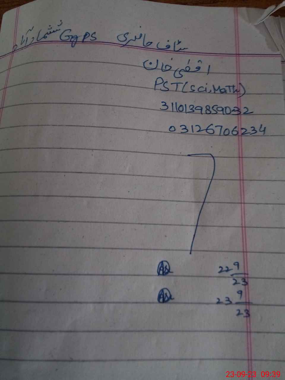 | Name: Ma**** Ar**** Designation: (School Headmaster's/Headmistress's) PST Phone/Cell Number: 03**** |