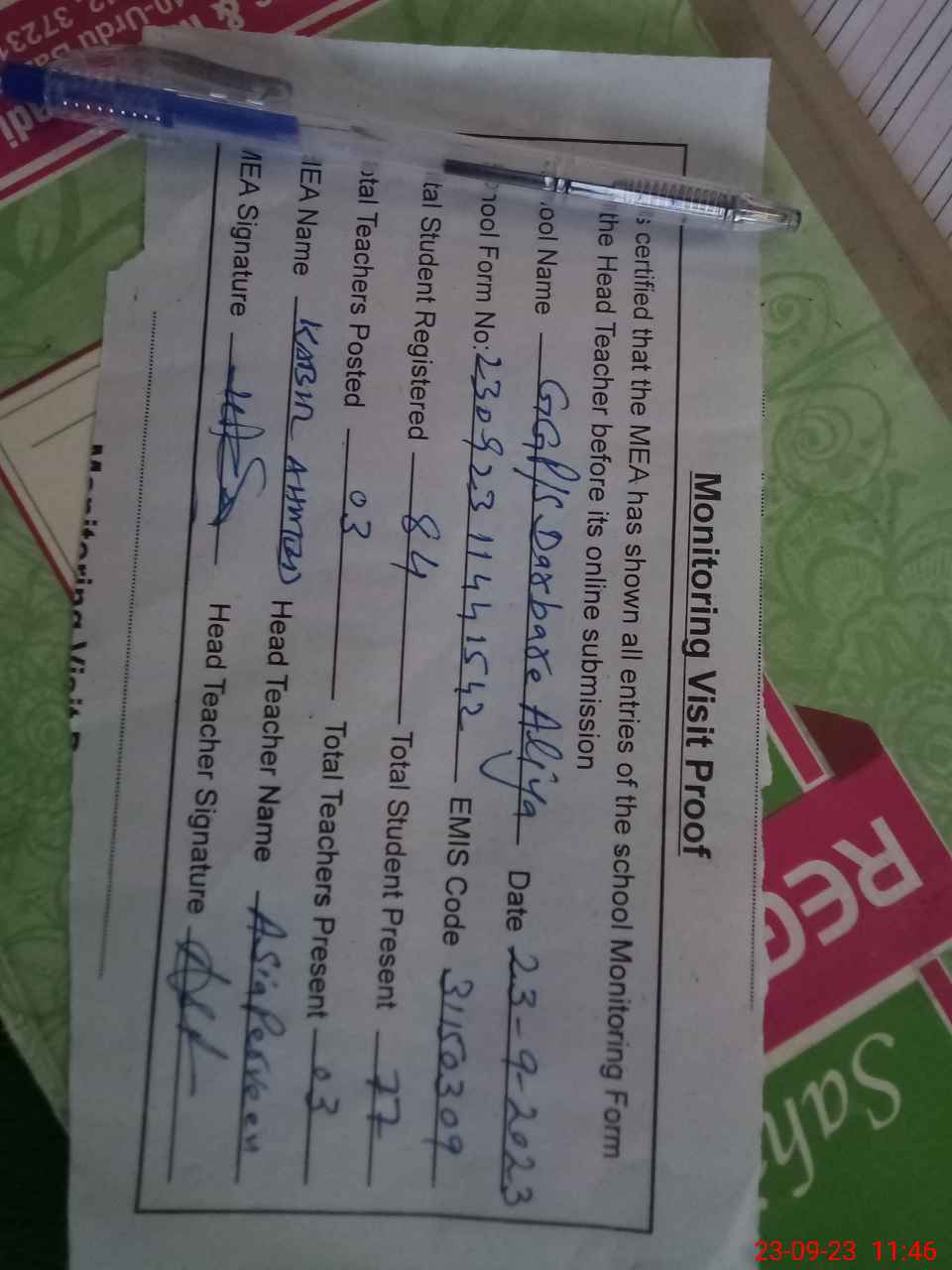 | EMIS Code: 31150309 | Name of School: GGPS DARBAR AALIA | |||