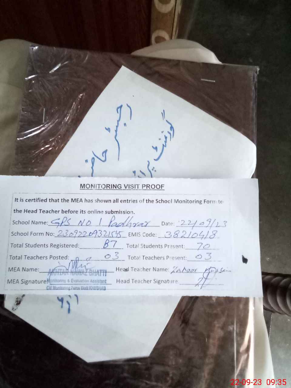 | EMIS Code: 38210418 | Name of School: GPS NO. 1 PADHRAR | |||