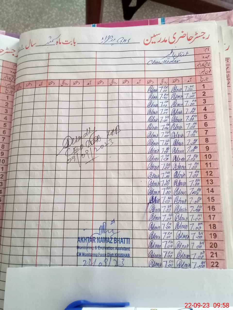 | Name: Gh**** Ra**** Designation: (School Headmaster's/Headmistress's) S S T Science Phone/Cell Number: 03**** |