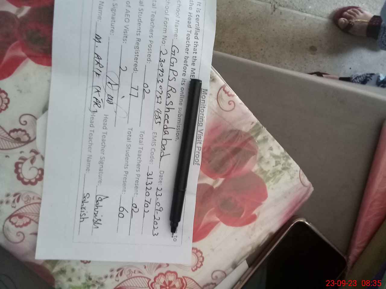 | Attendance Register | Head Teacher | MEA with School | Visit Proof |