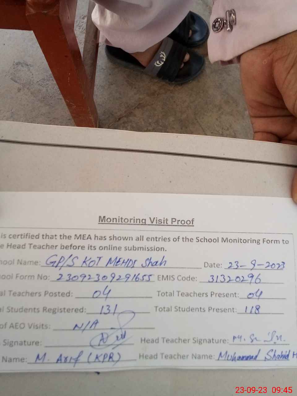| EMIS Code: 31320296 | Name of School: GPS KOT MEHDI SHAH | |||
