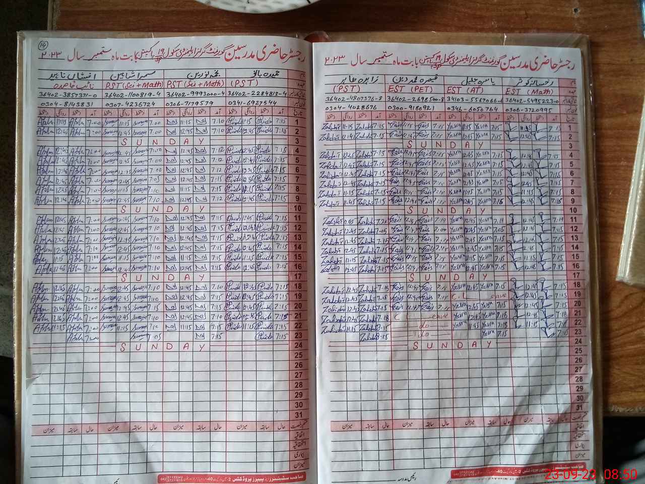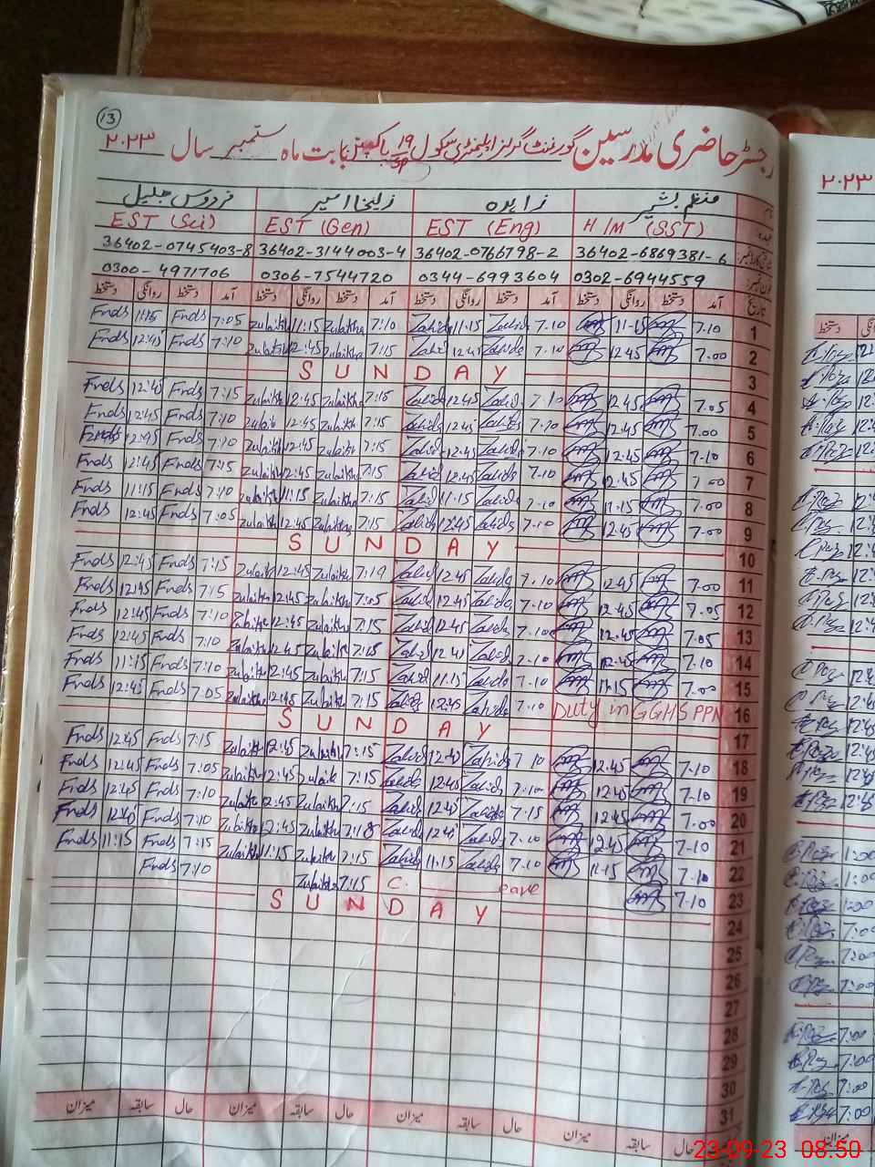 | Name: MU**** BA**** Designation: (School Headmaster's/Headmistress's) S.S.T.(GENERAL) Phone/Cell Number: 03**** |
