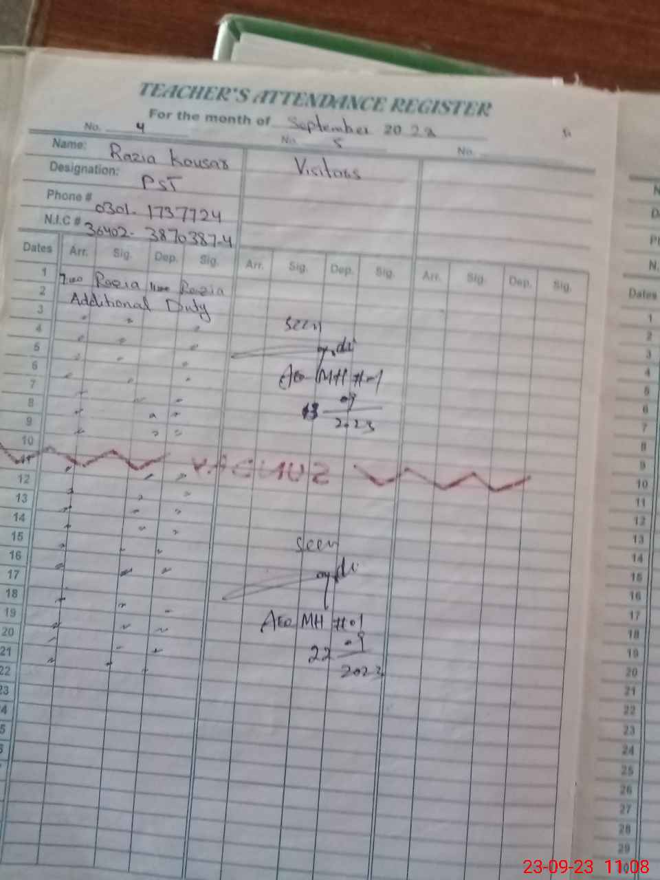 | Name: AS**** AS**** Designation: (School Headmaster's/Headmistress's) PST Phone/Cell Number: 03**** |
