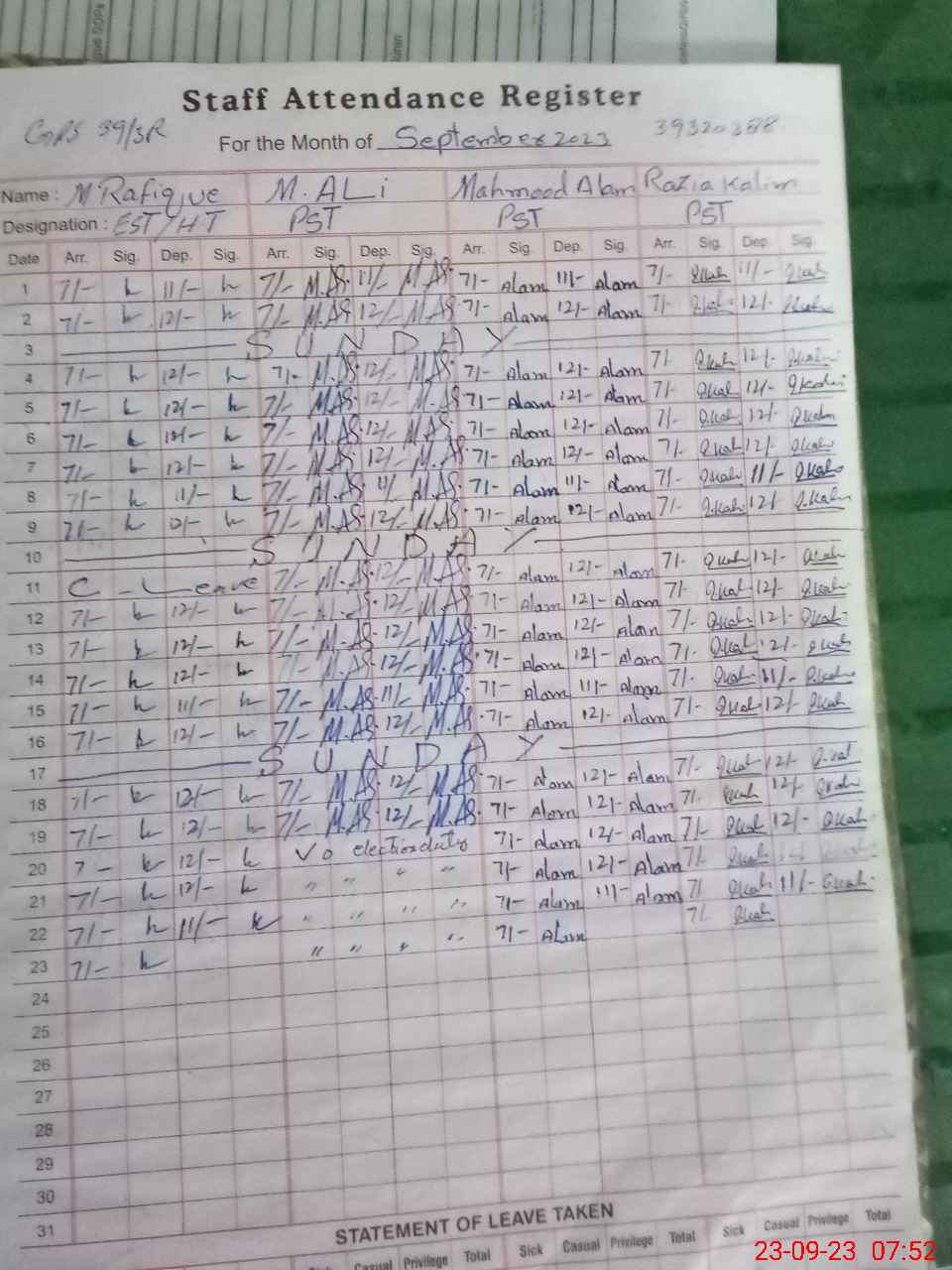 | Name: MU**** RA**** Designation: (School Headmaster's/Headmistress's) EST Phone/Cell Number: 03**** |