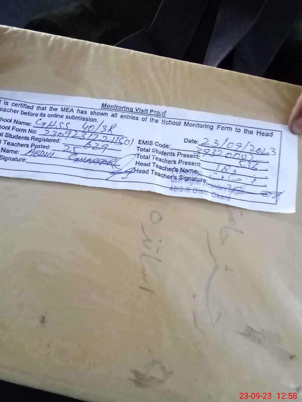 | EMIS Code: 39320002 | Name of School: GHSS 40/3.R OKARA | |||