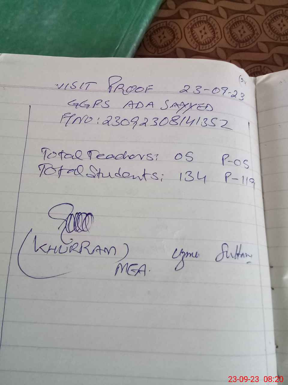 | Attendance Register | Head Teacher | MEA with School | Visit Proof |