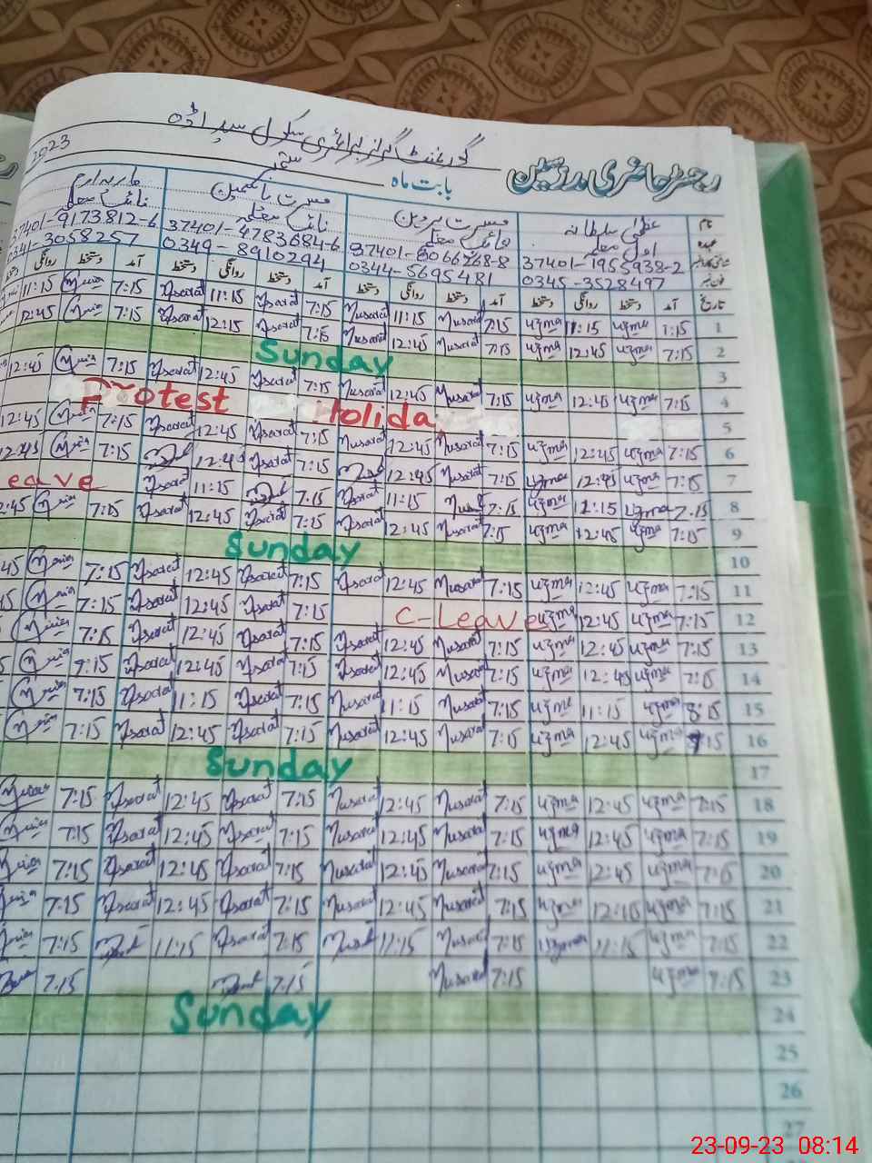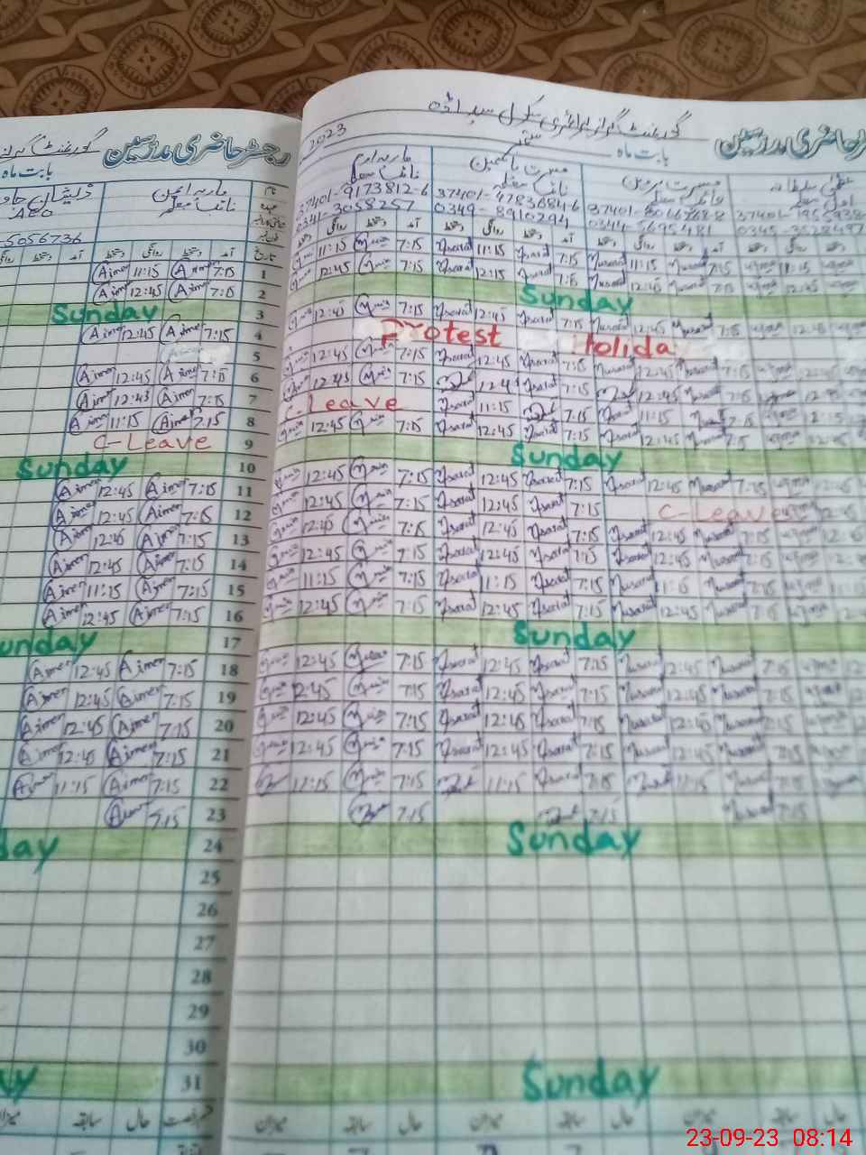 | CNIC | Full Name | Designation | R/C | Absence During Last Calender Month |