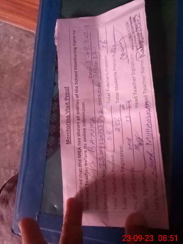 | EMIS Code: 31310221 | Name of School: GPS BANKA (After Noon) | |||