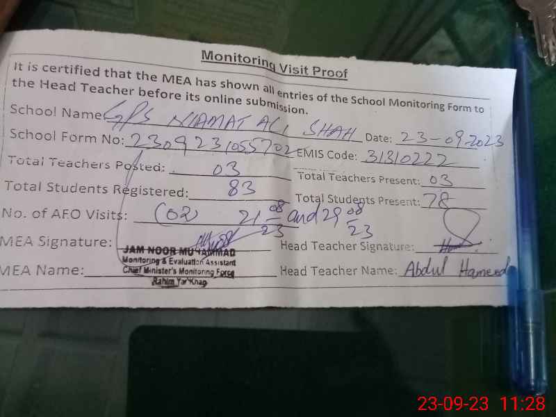 | EMIS Code: 31310222 | Name of School: GPS NEAMAT ALI SHAH | |||
