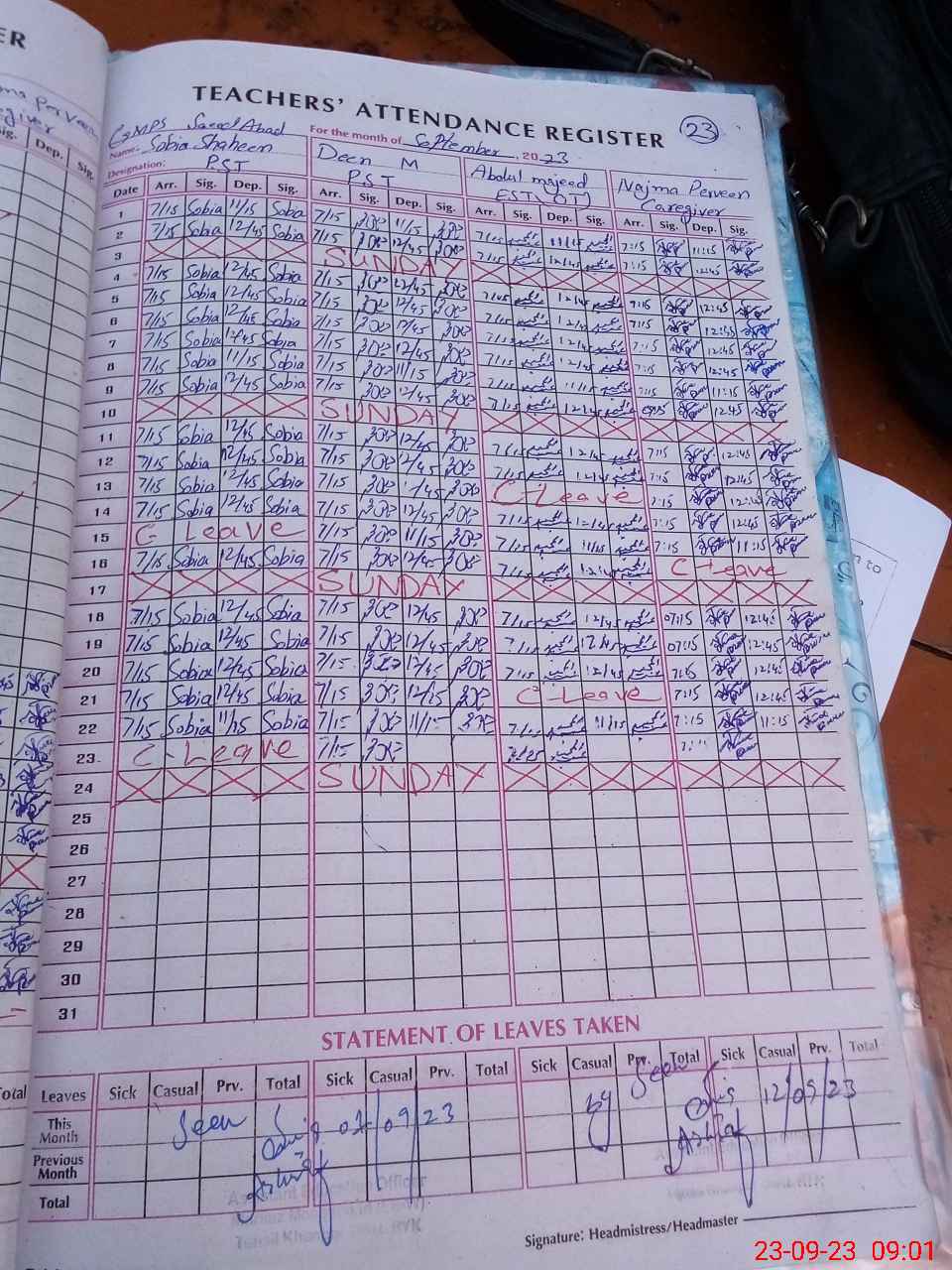 | Name: So**** Sh**** Designation: (School Headmaster's/Headmistress's) PST Phone/Cell Number: 03**** |